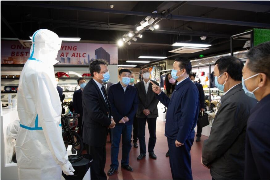 張昌爾走進(jìn)安徽輕工公司出口展廳,仔細(xì)察看產(chǎn)品,詳細(xì)詢問近期外貿(mào)出口情況和疫情對公司業(yè)務(wù)的影響,對公司積極擴(kuò)大防疫物資出口并取得良好成效予以肯定。