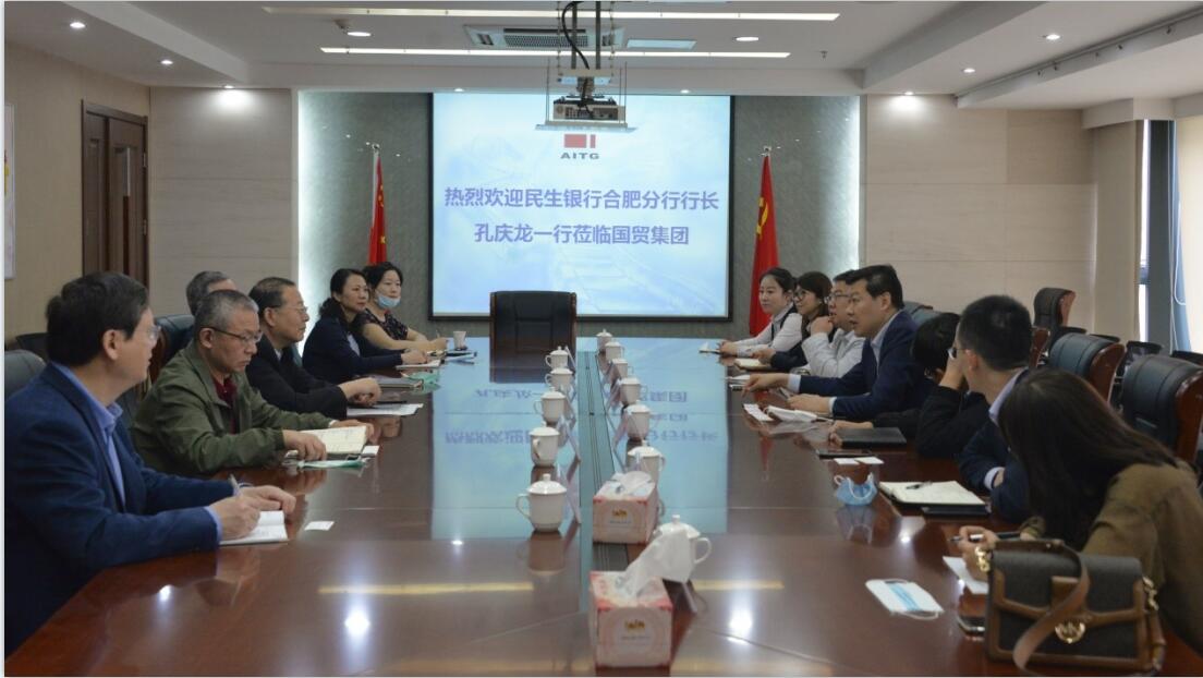 孔慶龍介紹了民生銀行的發展歷史及合肥分行的經營情況,他強調,國貿集團是民生銀行的戰略級客戶,未來將繼續高度重視和加強與國貿集團的深度合作,愿意為國貿集團提供優質服務、實現互惠共贏。