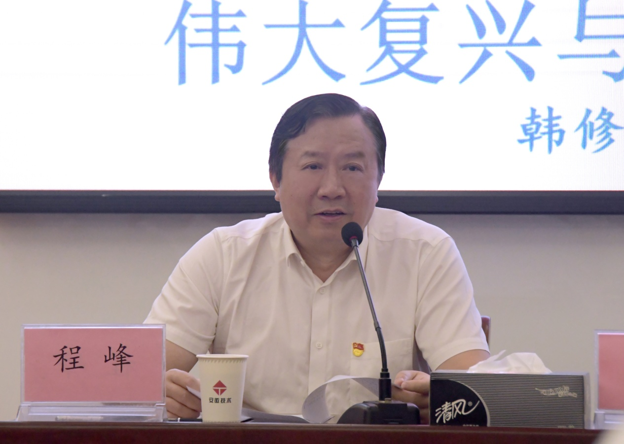 報告會上,韓修良以“偉大復興與安徽力量”為主題,結合安徽發展實際,從“走好偉大復興趕考之路”“偉大復興巨輪領航中國行穩致遠”“書寫偉大復興的安徽篇章”等三個方面,對習近平總書記“七一”重要講話精神作了深入淺出的系統解讀。