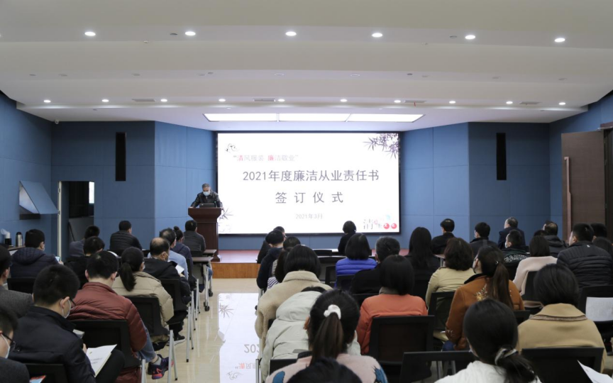 簽訂儀式上,服裝公司班子成員、各部室負責人、關鍵崗位代表及工會、團委、二級機構負責人等,現場簽訂了《2021年度廉潔從業承諾書》。此外,為強化各部室負責人的主體責任,公司黨委還與27名部室負責人簽訂了《2021年度廉潔從業責任書》。