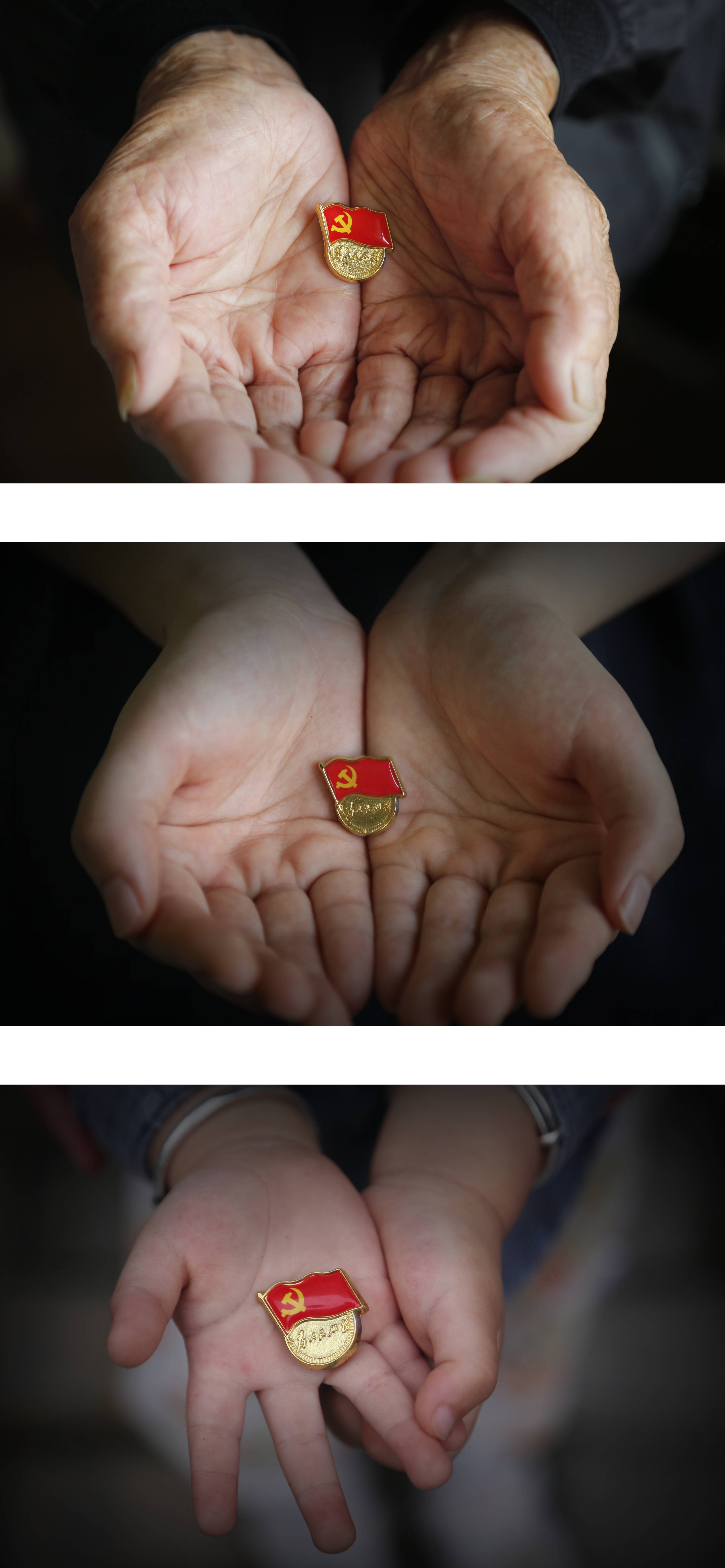 《傳承》-安糧期貨-郝曉巍,2021年6月攝于合肥。作品以“傳承”為立意,通過(guò)老青幼三代人手捧黨徽的畫(huà)面,表達(dá)了長(zhǎng)輩對(duì)晚輩的期望與寄語(yǔ),繼承光榮傳統(tǒng),弘揚(yáng)革命精神,傳承紅色基因。