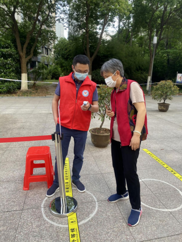 在天鵝湖畔小區,葉鋒、丁守忠化身“大白”,配合核酸檢測人員進行掃碼錄入工作,直至晚上十點;許明仙、王宜身著紅色志愿馬甲,配合待檢人員的測溫、安康碼核驗及秩序引導維護。在國際麗晶城小區,汪洋、陳秋宇穿上防護服,配合開展核酸檢測登記錄入。支部發展對象鄭宇倩所在小區處于封控區,得知社區需要防疫志愿者時,主動報名參加小區防疫先鋒隊,協助醫護人員核酸檢測。一天下來,汗透的衣服和酸痛的小腿,讓大家深刻體會到疫情防控工作的辛苦,切身感受到防控成果的來之不易。